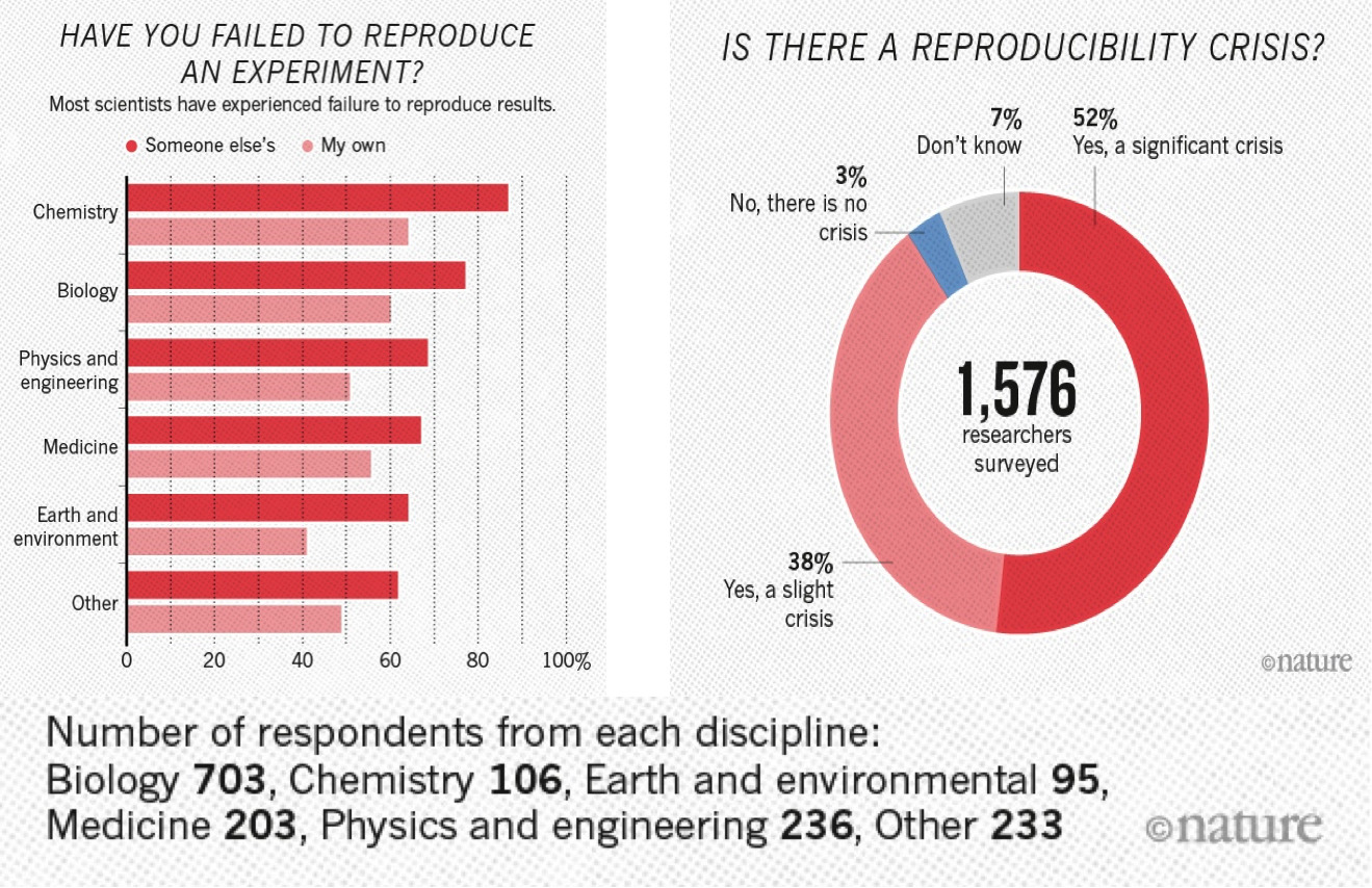 A 2016 survey in Nature revealed that irreproducible experiments are a problem across all domains of science: